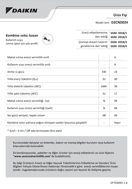 2024 Model Daikin NDJ Smart Premix 24 kW Tam Yoğuşmalı Kombi