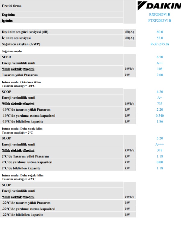 2024 Model Daikin Sensira FTXF20E A++ 7000 Btu Inverter Klima R32 Wifi