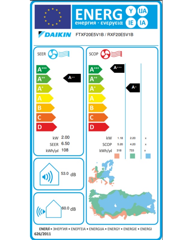 A++ verimliliğe sahip klimalar A sınıfı enerji verimliliğine göresoğutmada %20, A+ enerji verimliliğine sahip klimalar ise ısıtmada%18 daha tasarrufludur.