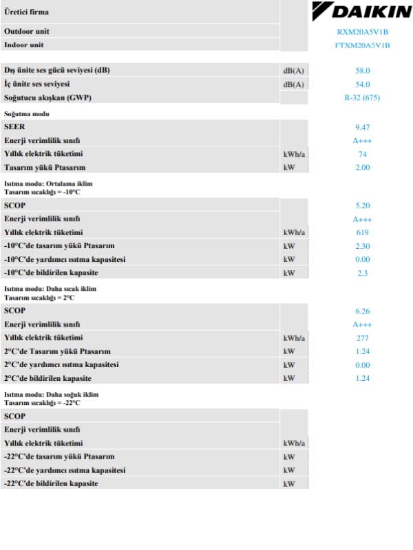 Sezonsal verimlilik değerleri soğutma ve ısıtma için A+++ seviyesine kadar